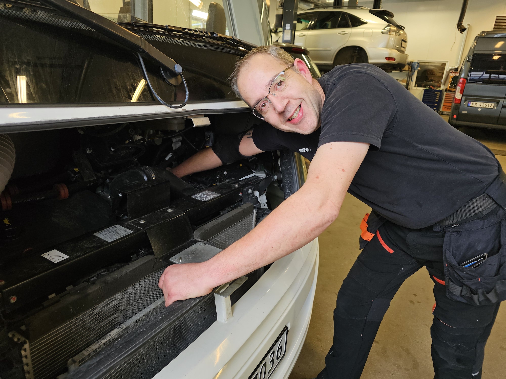 Robert Eriksson er mekaniker og gjennomfører service, justeringer, vedlikehold og reparasjoner på alle typer bobiler.