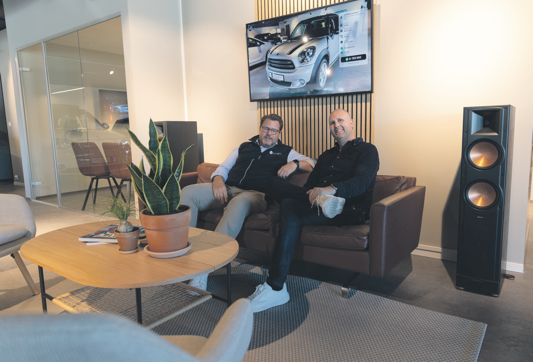 Vi slår oss ned i sofaen midt i lokalet der kundene tas imot med en kopp kaffe og en hyggelig prat. Stemningen er lun og avslappet i “stua” hos de to bilselgerne, og det er absolutt ingen tilfeldighet.