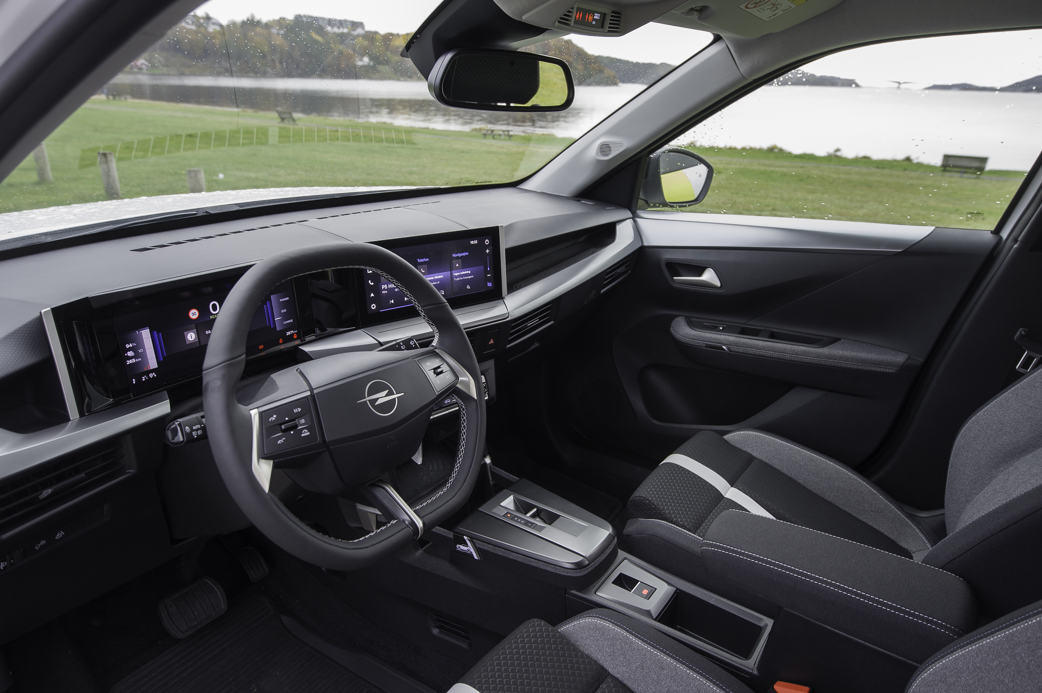 Det første som slår oss bak rattet er at Opel har satt egen signatur på interiøret, det er nokså annerledes fra Citroën Aircross. Den lange smale «stripen» med instrumenter plassert under frontruta er borte og i stedet er det et mer konvensjonelt førerdisplay foran rattet. Det er bygd sammen med skjermen i midten på dashbordet. En ganske elegant løsning som fungerer helt greit. Heldigvis har Opel valgt fysiske knapper til å betjene klima anlegget. Ellers kan mye betjenes med knapper på rattet. Stemmestyring er også på plass.