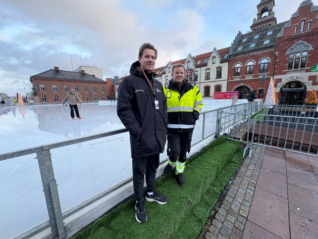 Jens Bech fra Gatepuls og Arnvid Sejnæs fra Parkvesenet oppfordrer alle Kompis-brukerne til å bidra slik at det fortsatt blir hyggelig og trygt å bruke isbanen på Torvet.