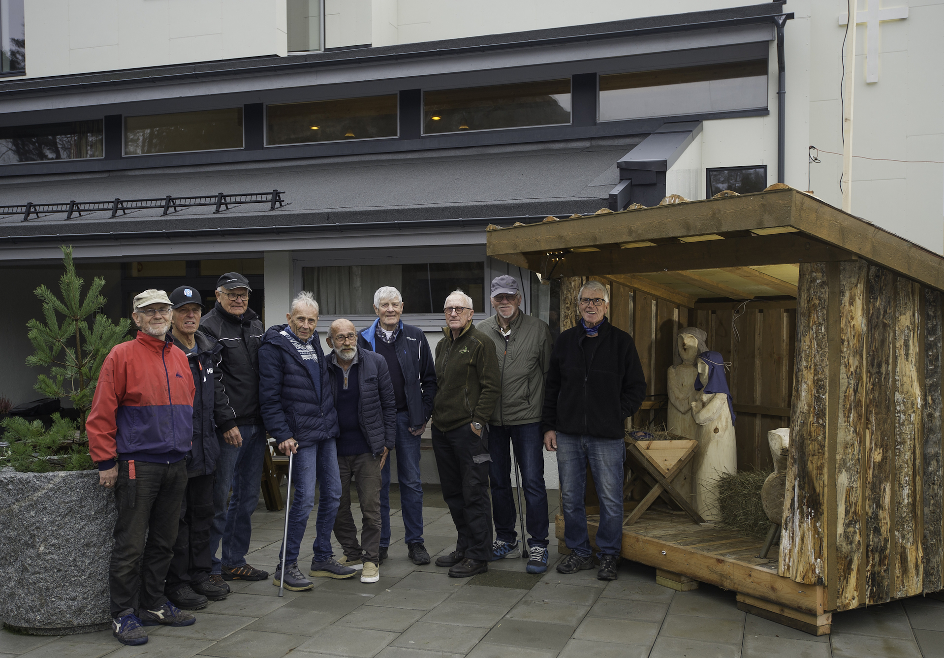 Vi treffer ham og en gruppe ivrige pensjonister en grå novemberdag mens de jobber iherdig for å få på plass stallen som Arvid har fraktet på henger fra garasjen sin på Søm. Det er der, i garasjen, at stallen er blitt til i løpet av høsten. Ideen fikk han av en annen julestallmaker, Finn Einar Isaksen, som har laget en liknende, dog i noe mindre utgave.