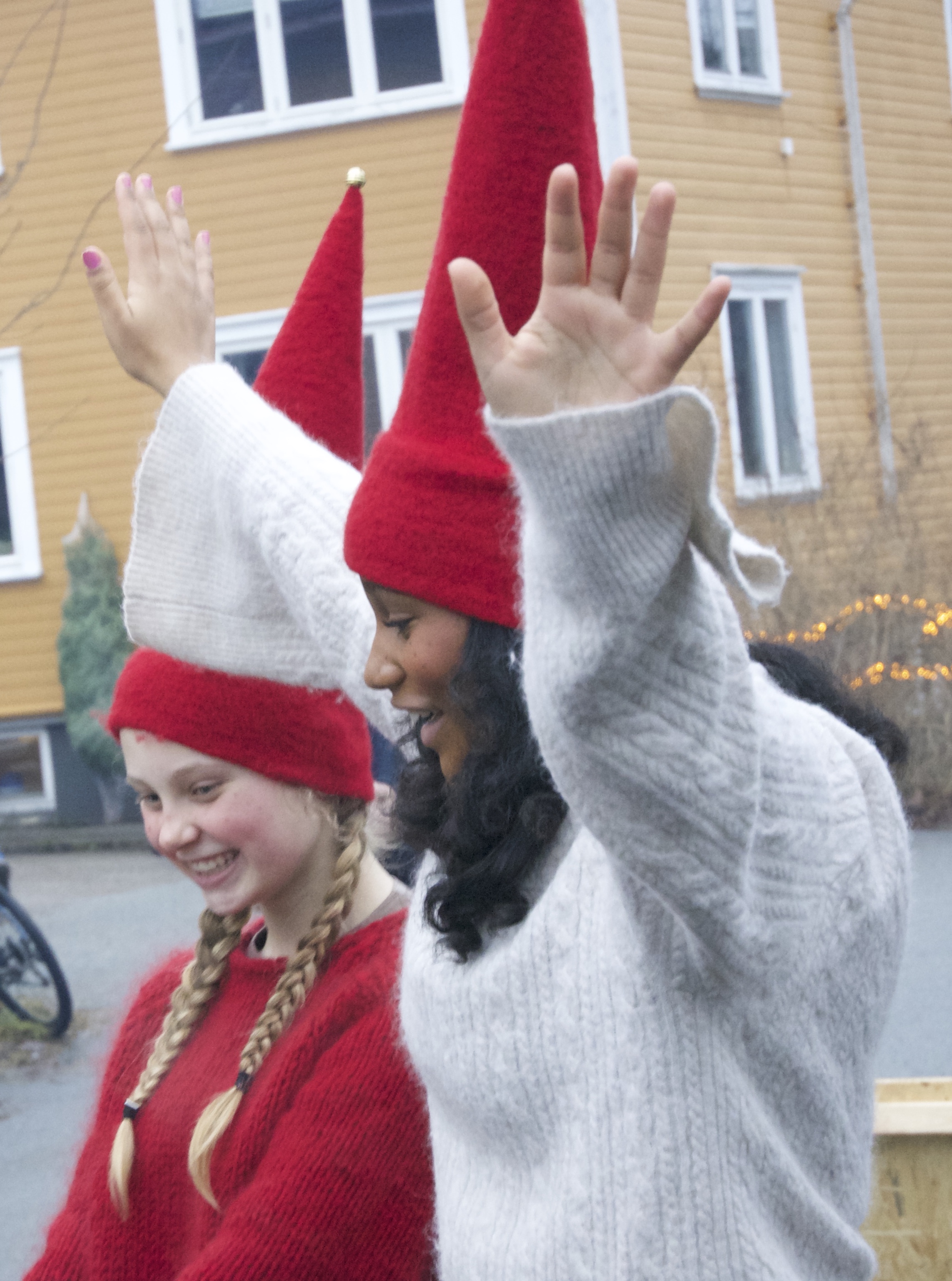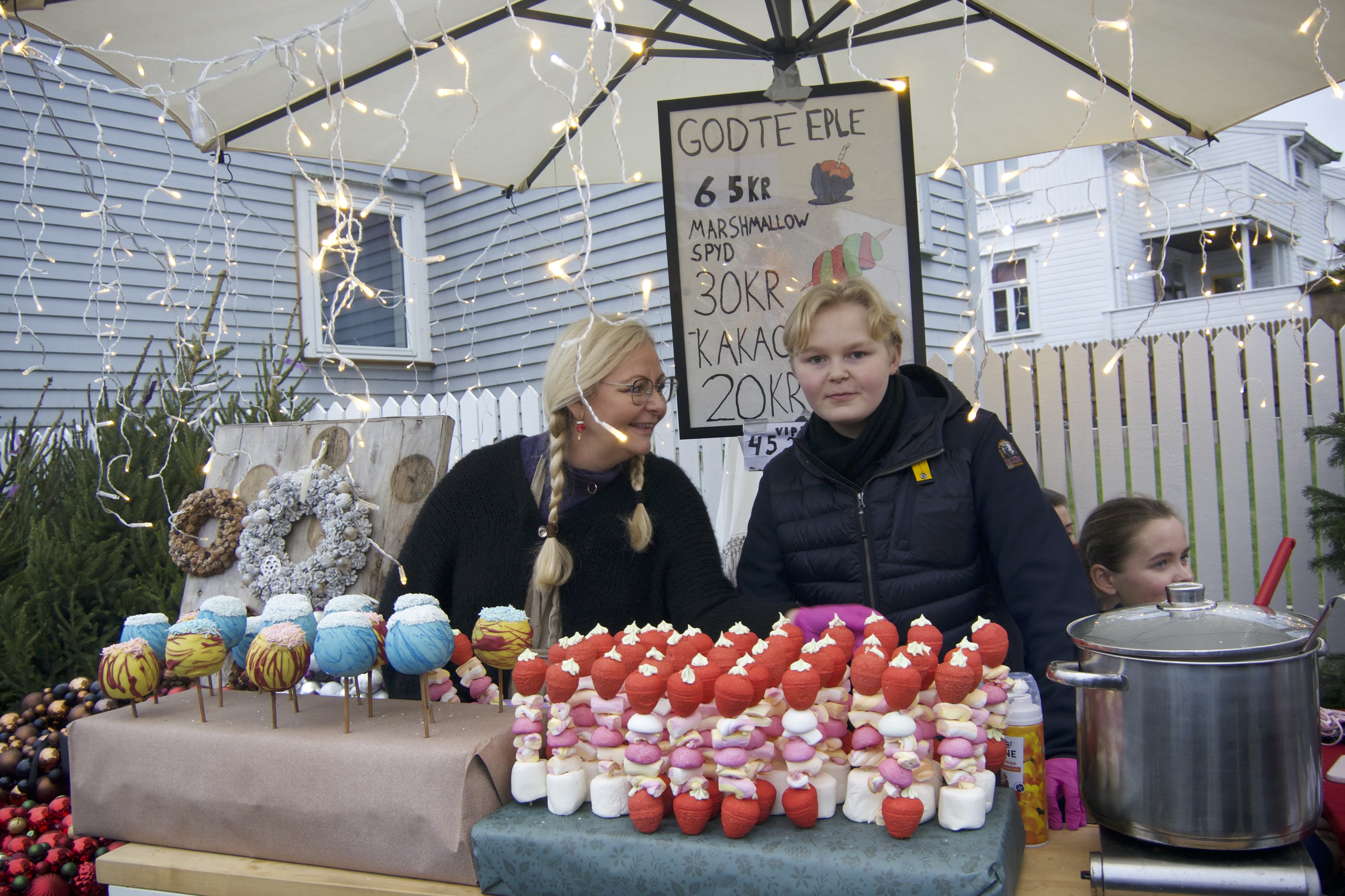 FLOTT: Torvet gjør seg i vinternatta under julebelysningen.RAMPENISSER: Josefine Bakke Pedersen (13) og Naomi Alexandra Aboagye Helland (15) var rampenisser under årets julemarked på Grimsvollen, hvor de spøkte med gjestene.PONNIRIDNING: Det var lang kø av barn som ønsket å ri på ponni under Grimsvollens Julemarked.