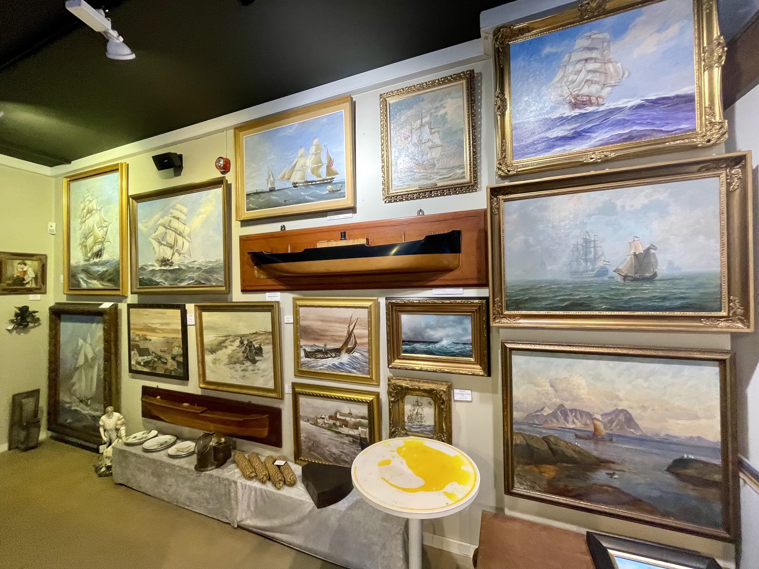 – Vi har flere mennesker enn vanlig, forteller Goman om galleriet som er sterkt preget av tilstedeværelsen av malerier med maritime tema. Enten motivet er havet, arbeidet eller hverdagslivet, speiler bildene tiden og menneskene som levde i den.